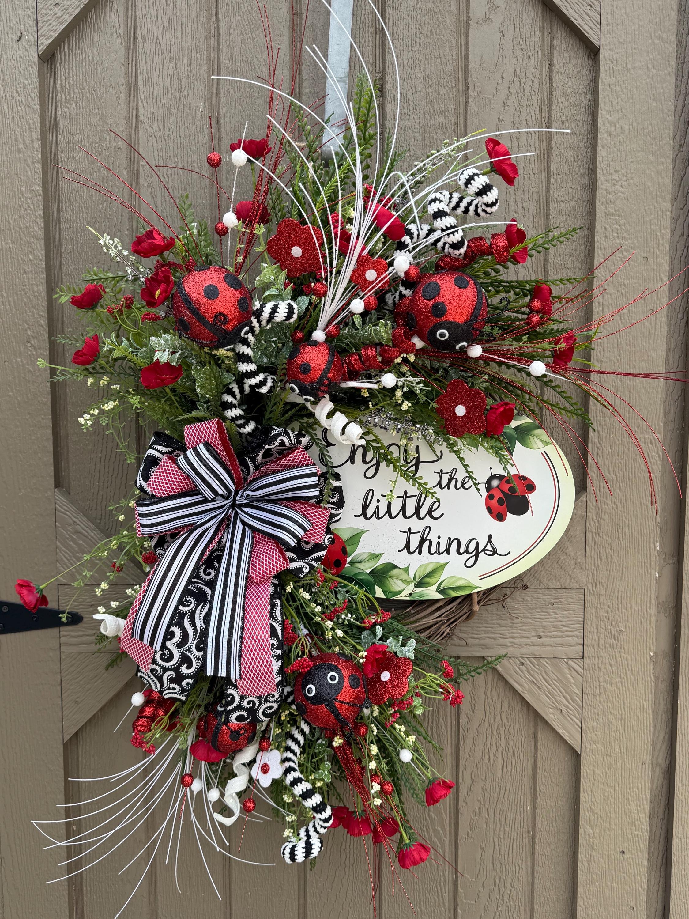 Store › Enjoy the Little Things Ladybug Wreath Enjoy the Little Things Ladybug Wreath $98.00 Enjoy the Little Things Wreath/Black and Red Ladybug Door Hanger/Everyday Home Decor Enjoy the Little Things Wreath/Black and Red Ladybug Door Hanger/Everyday Home Decor Add To Cart Added!