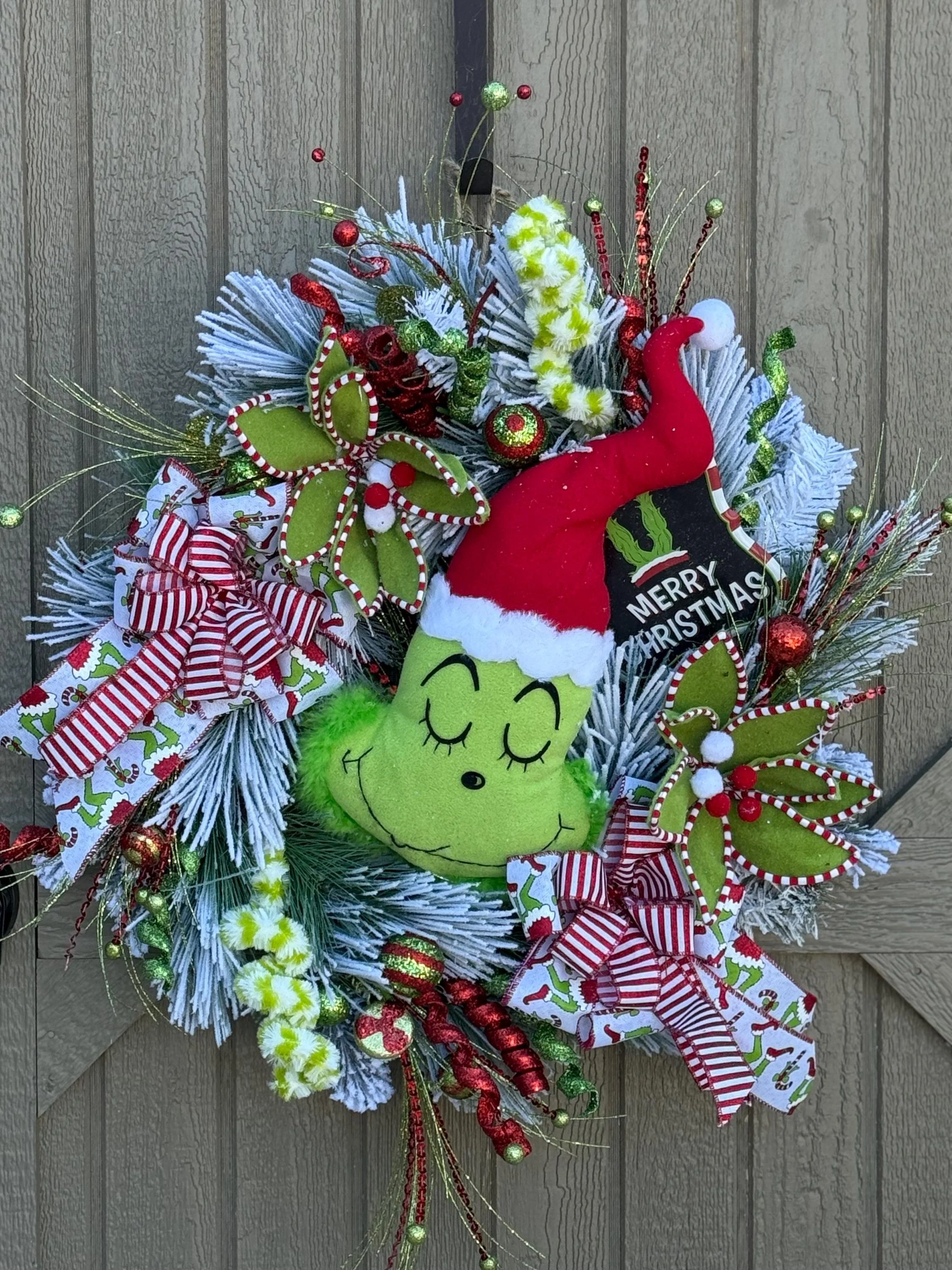 Store › Grinch Christmas Wreath Grinch Christmas Wreath $90.00 sold out Merry Christmas Wreath/Grinch Door Hanger/Holiday Home Decor Merry Christmas Wreath/Grinch Door Hanger/Holiday Home Decor Sold Out Added!