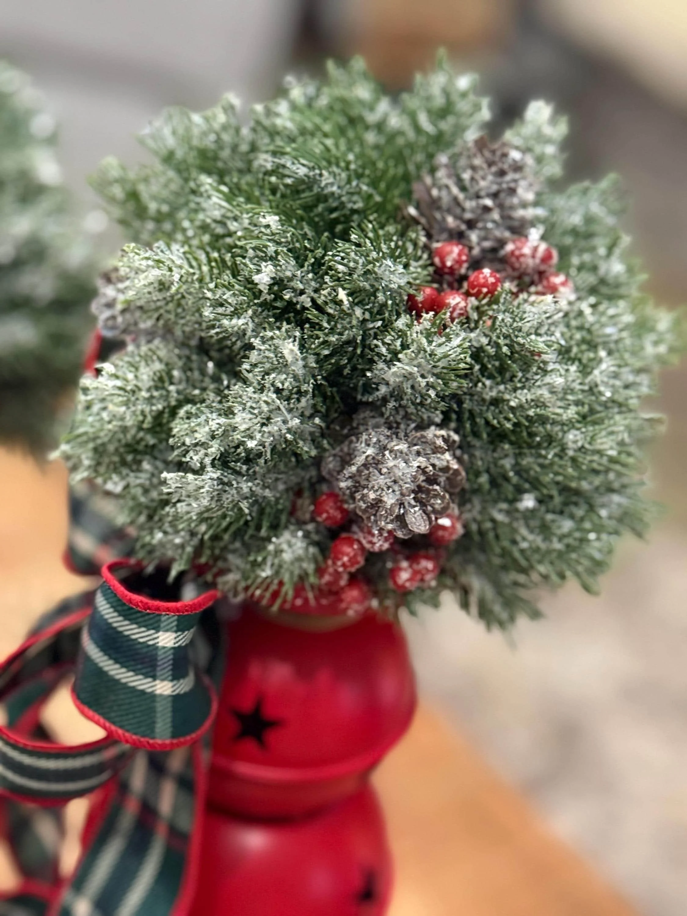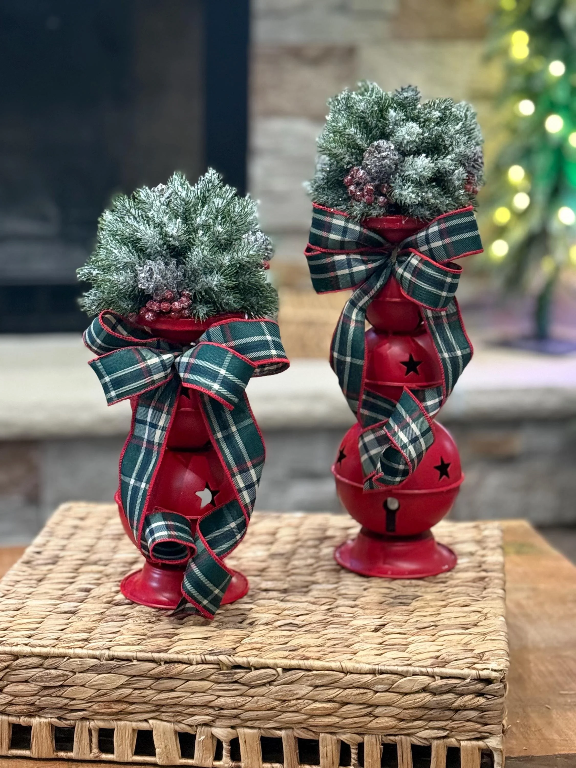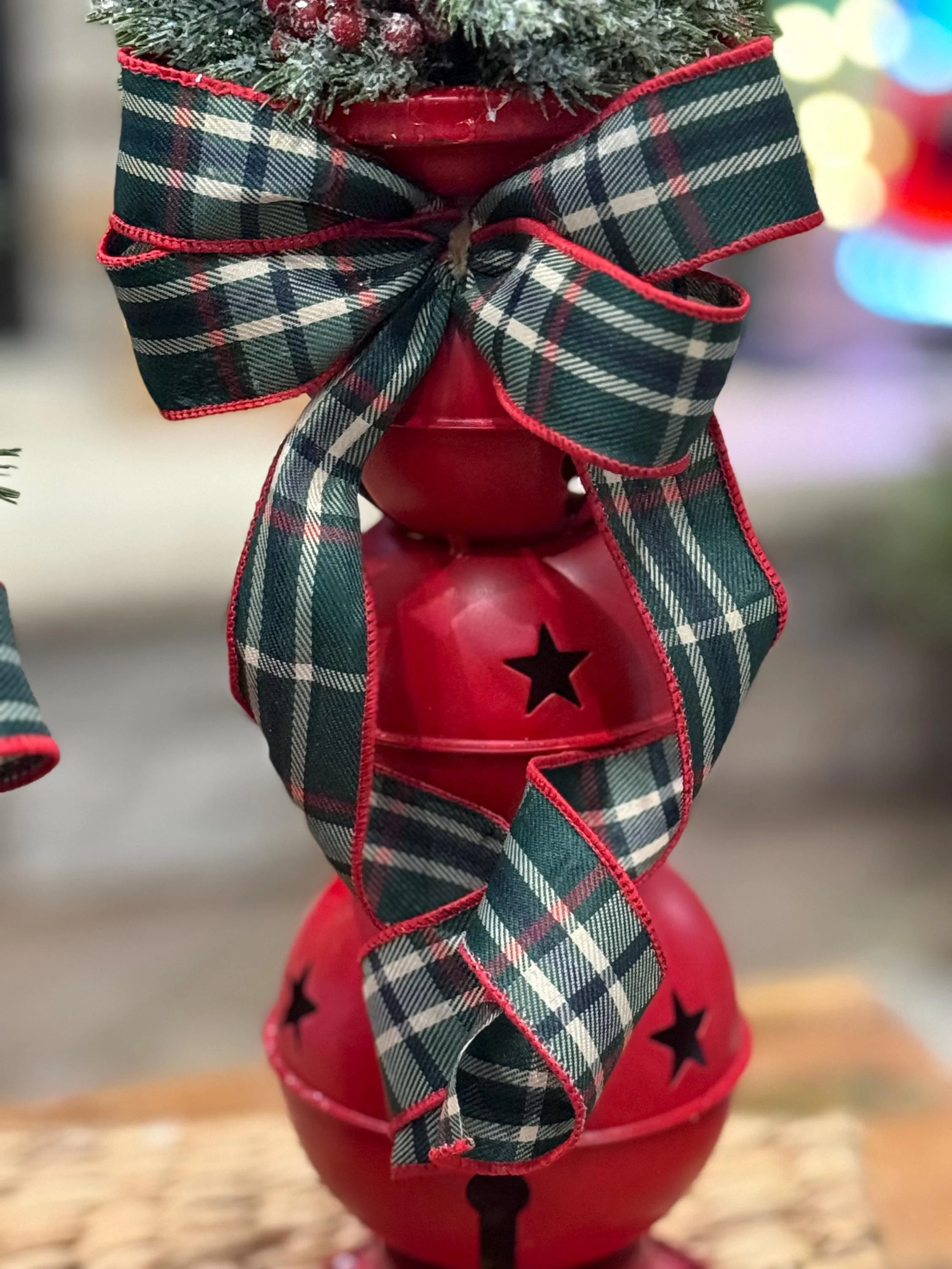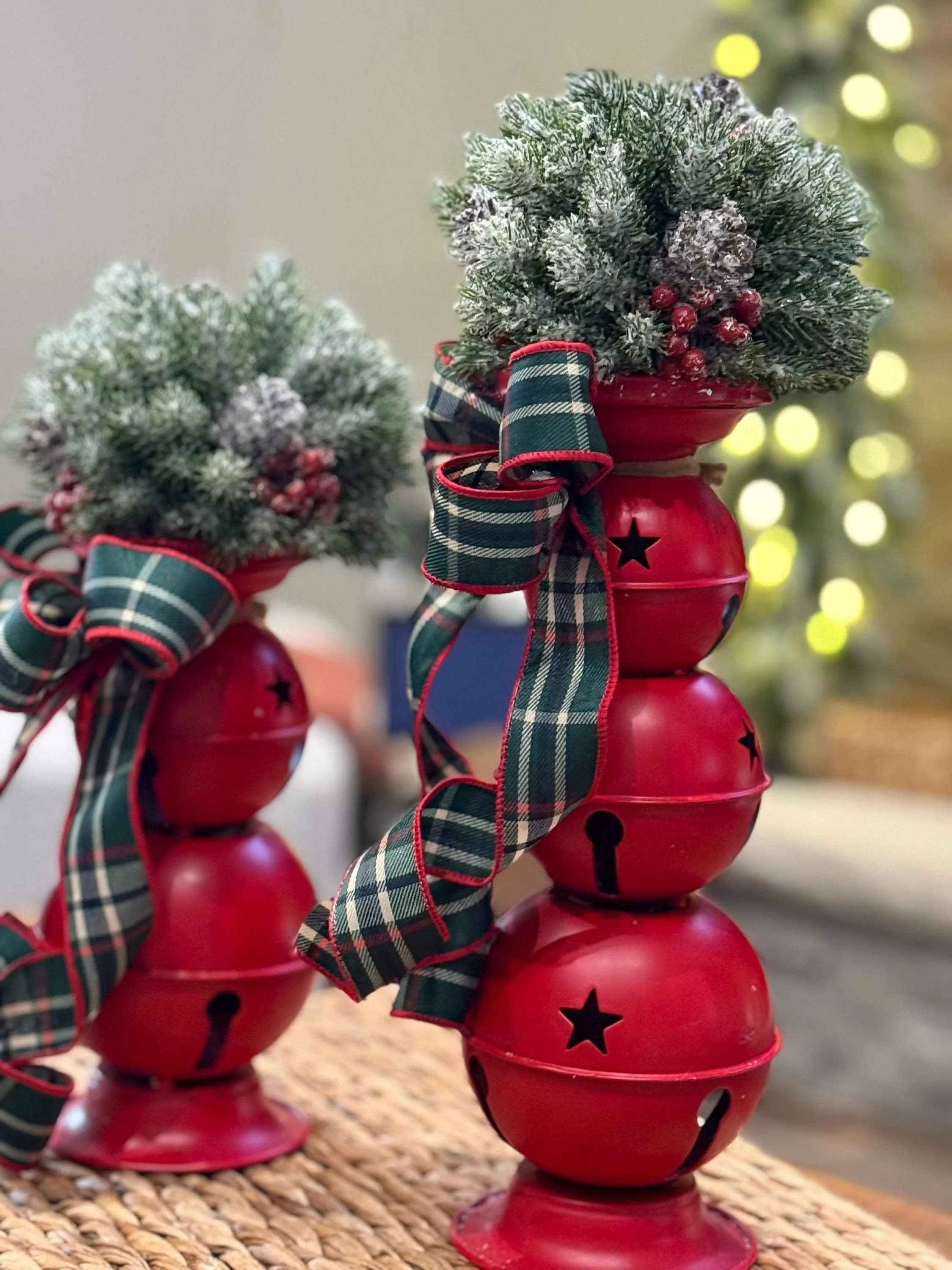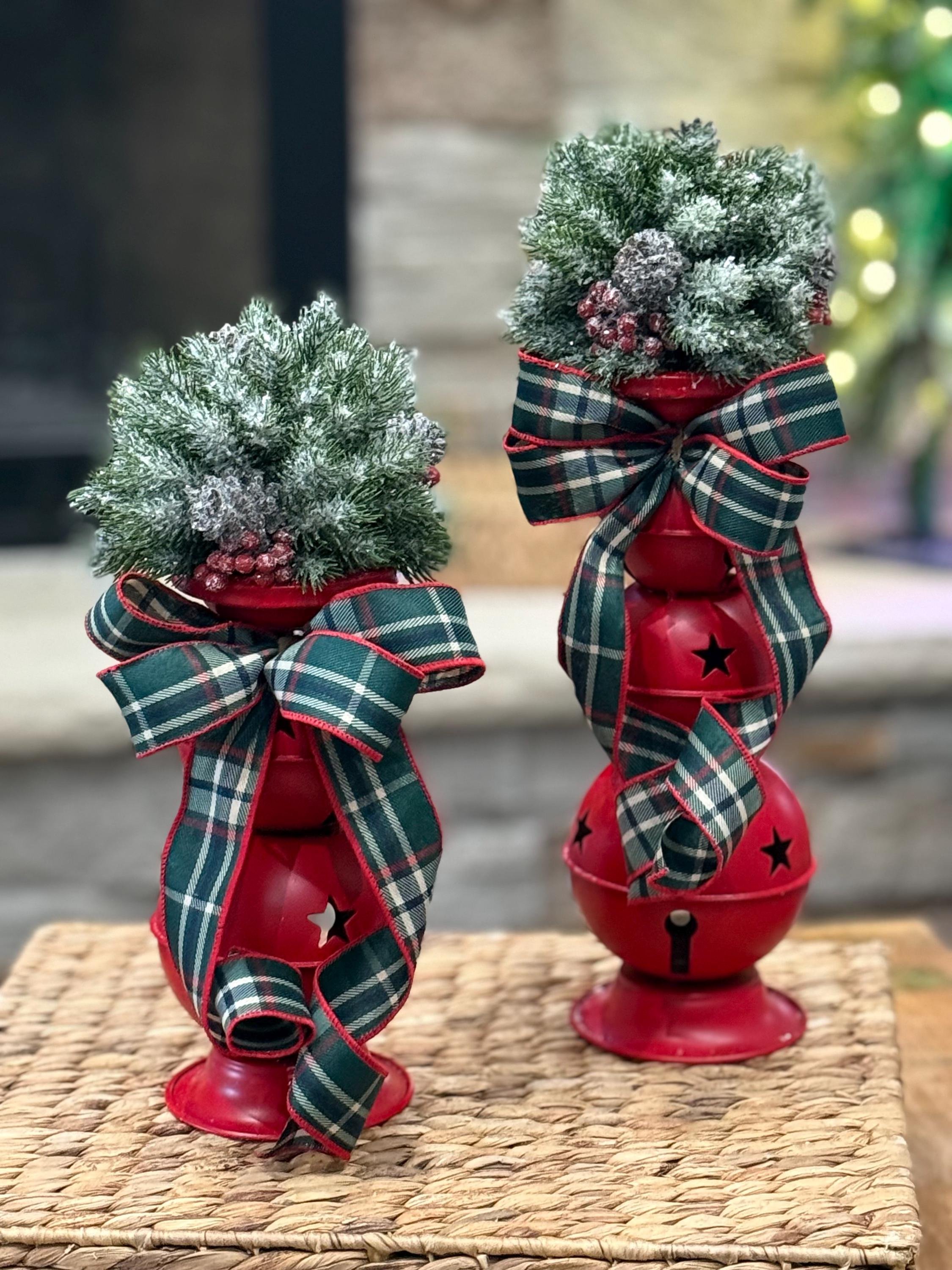 Matching Christmas Candlesticks/Winter Jingle Bells Table Decor/Holiday Home Decor Small candlestick measures 10” bare and 14” with Orb Large candlestick measures 13” bare and 17” with Orb