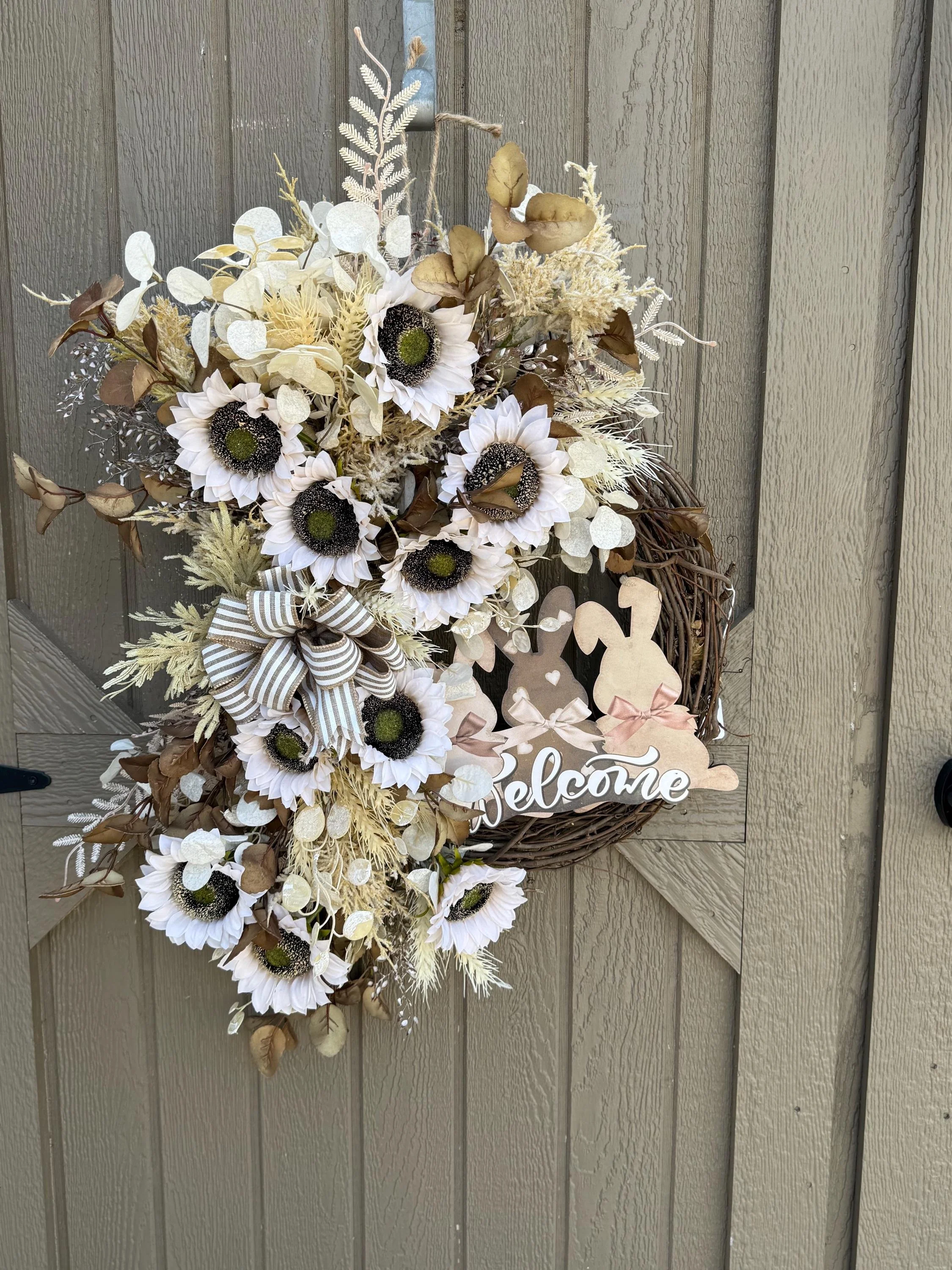 Store › Neutral Sunflower Welcome Bunny Holiday Wreath Neutral Sunflower Welcome Bunny Holiday Wreath $88.00 Holiday Sunflower Wreath/Spring Welcome BunnyDoor Hanger/Easter Home Decor Holiday Sunflower Wreath/Spring Welcome BunnyDoor Hanger/Easter Home Decor Add To Cart Added!