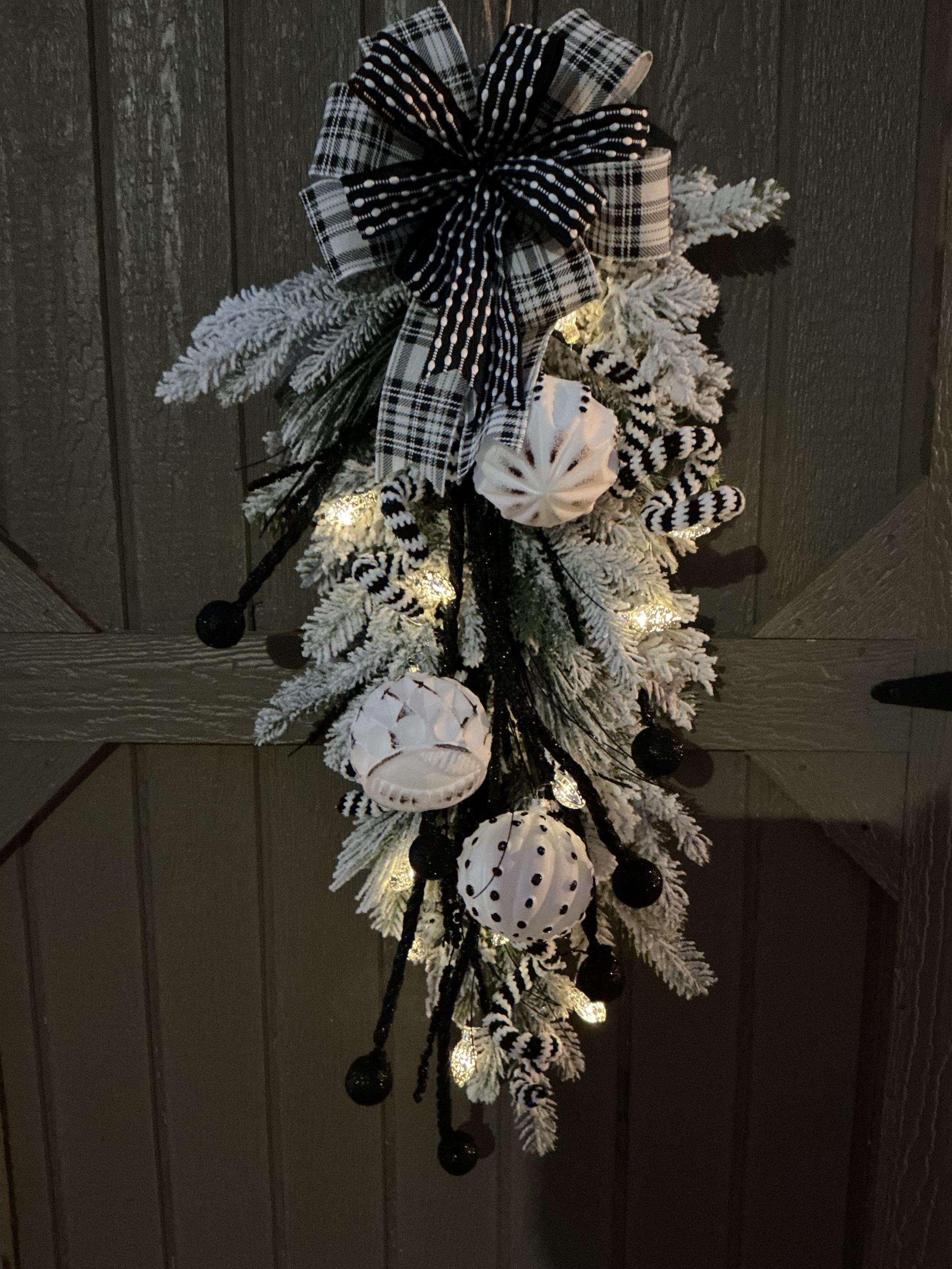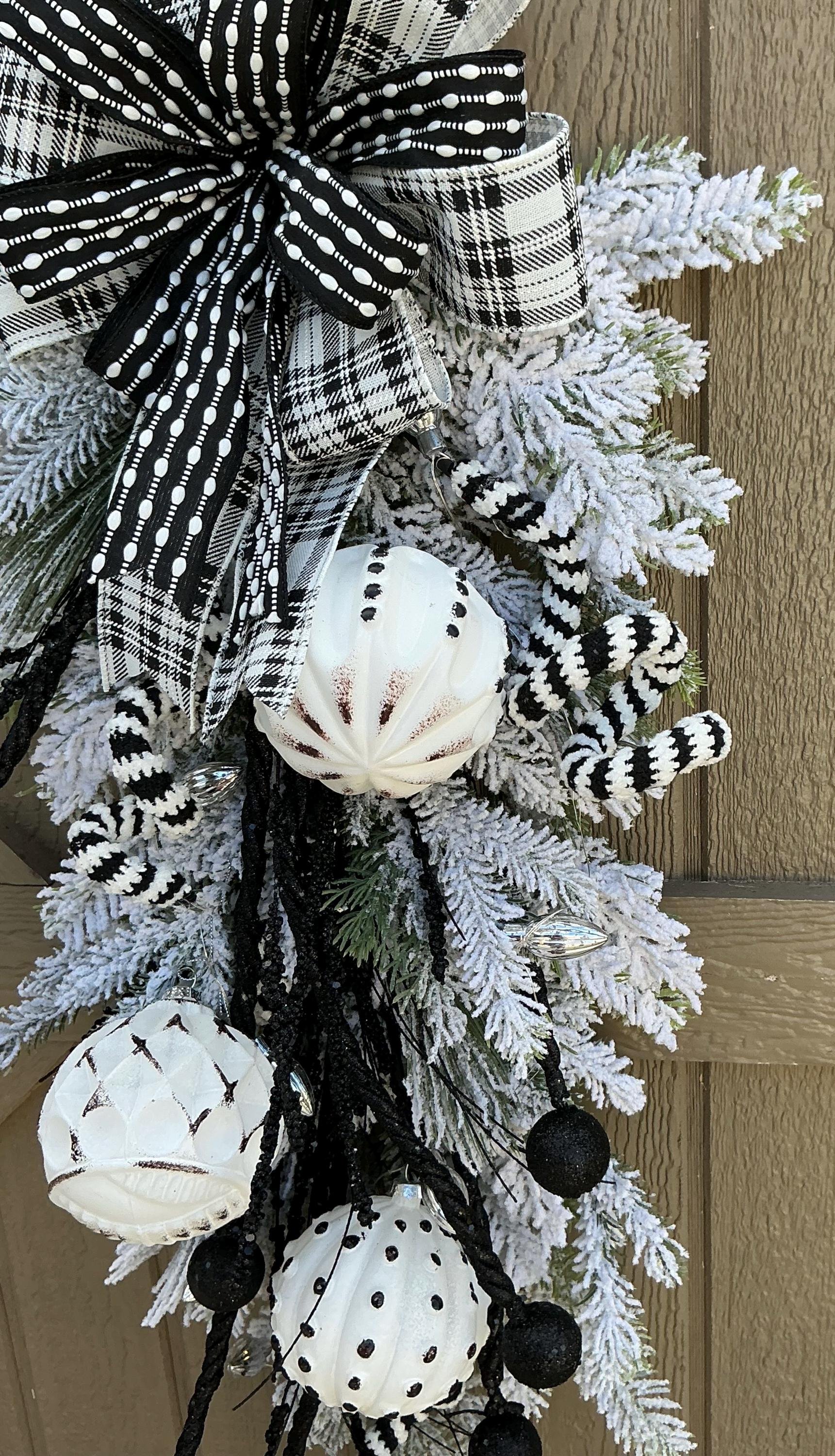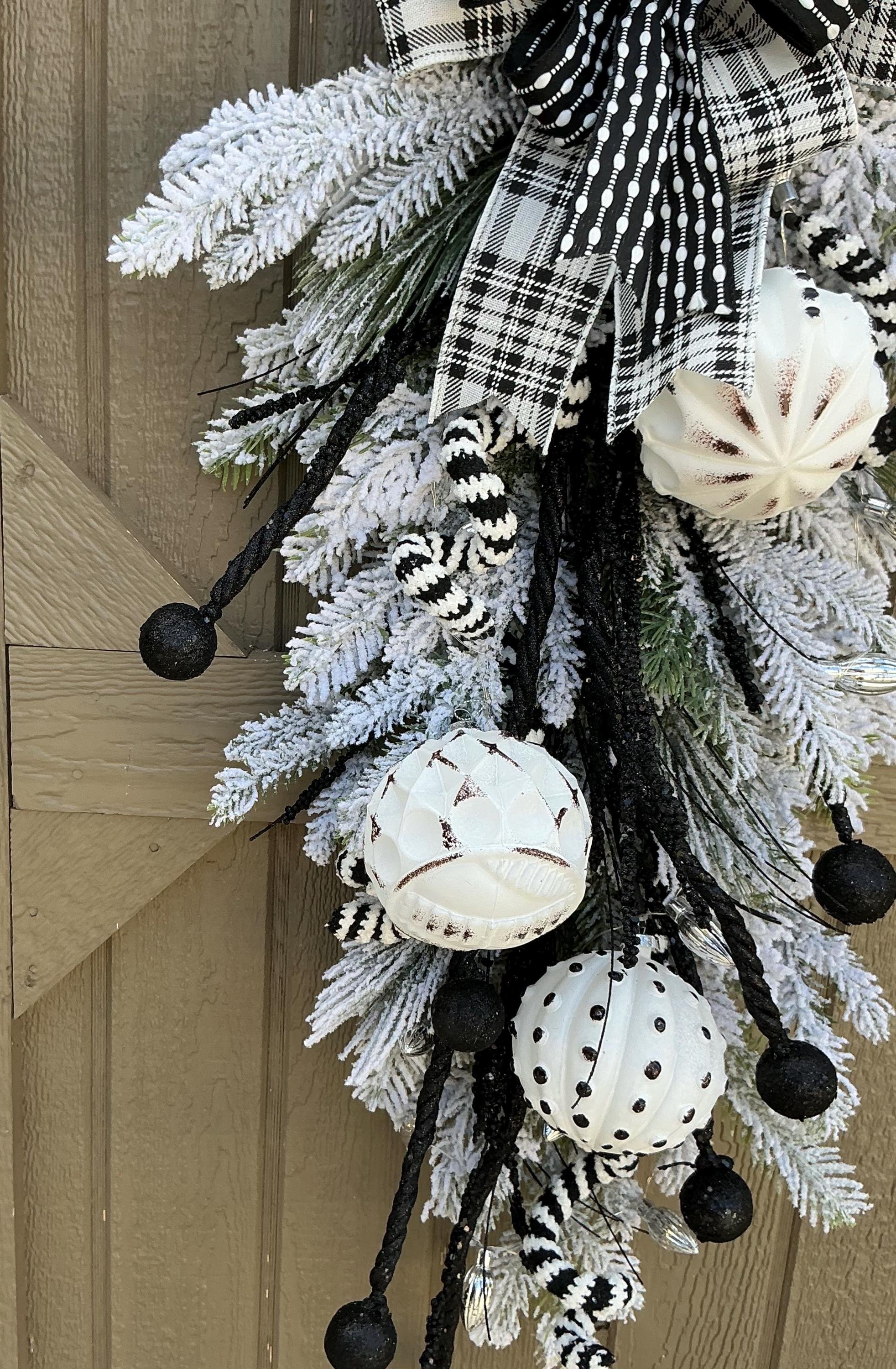 Store › Whimsical Black and White Ornament Holiday Swag Whimsical Black and White Ornament Holiday Swag $55.00 sold out Holiday Wreath/Whimsical Black and White Door Hanger/Lighted Home Decor/Ornaments Winter Decor Holiday Wreath/Whimsical Black and White Door Hanger/Lighted Home Decor/Ornaments Winter Decor Sold Out Added!