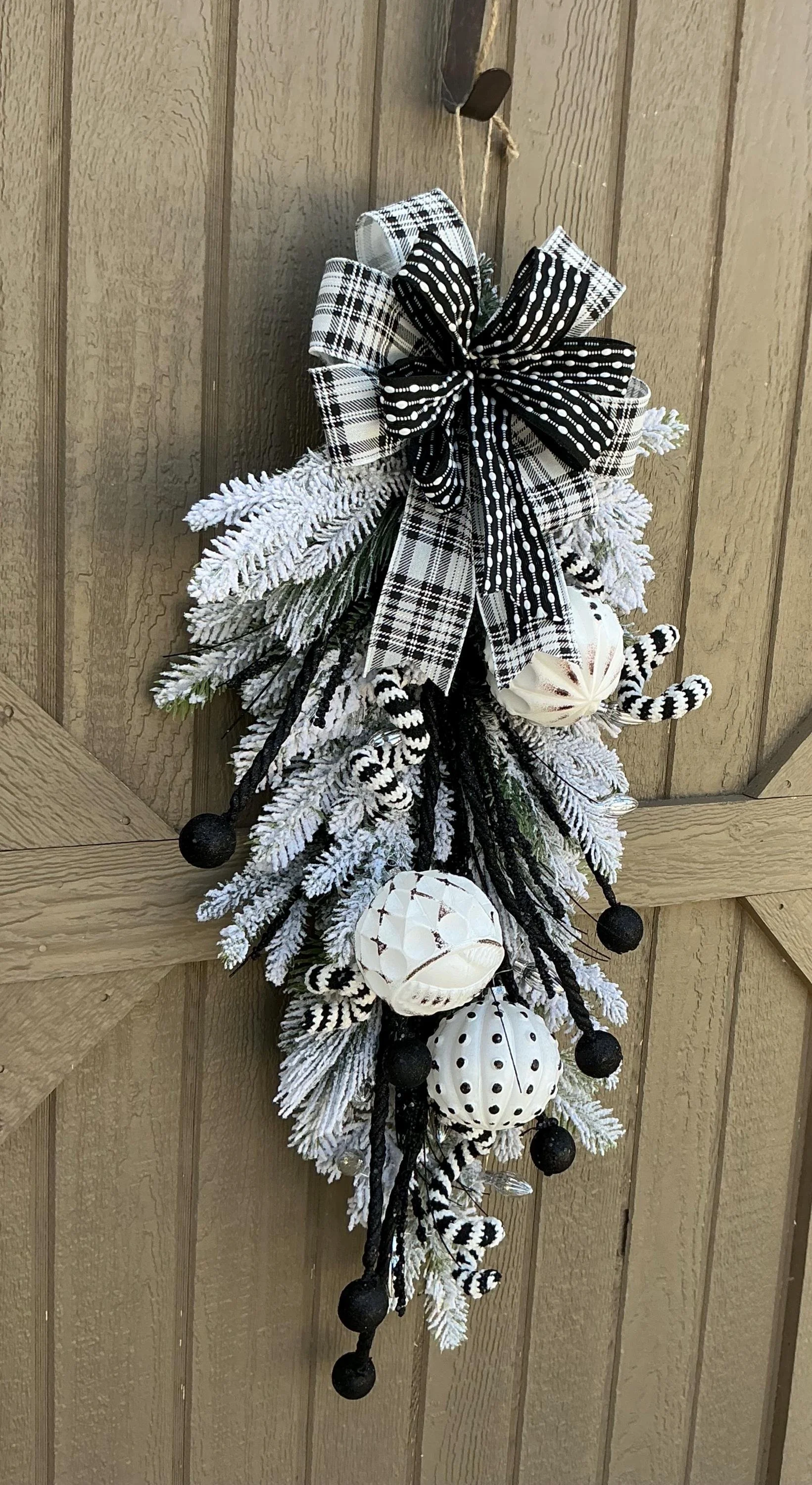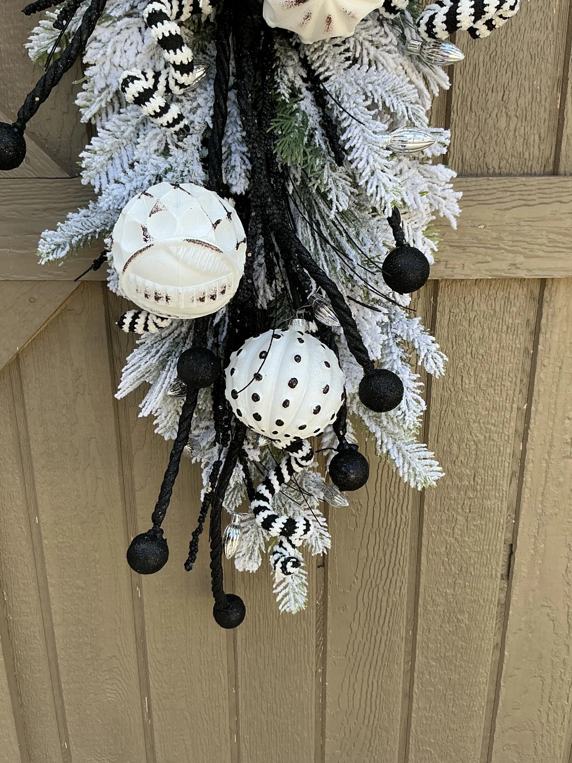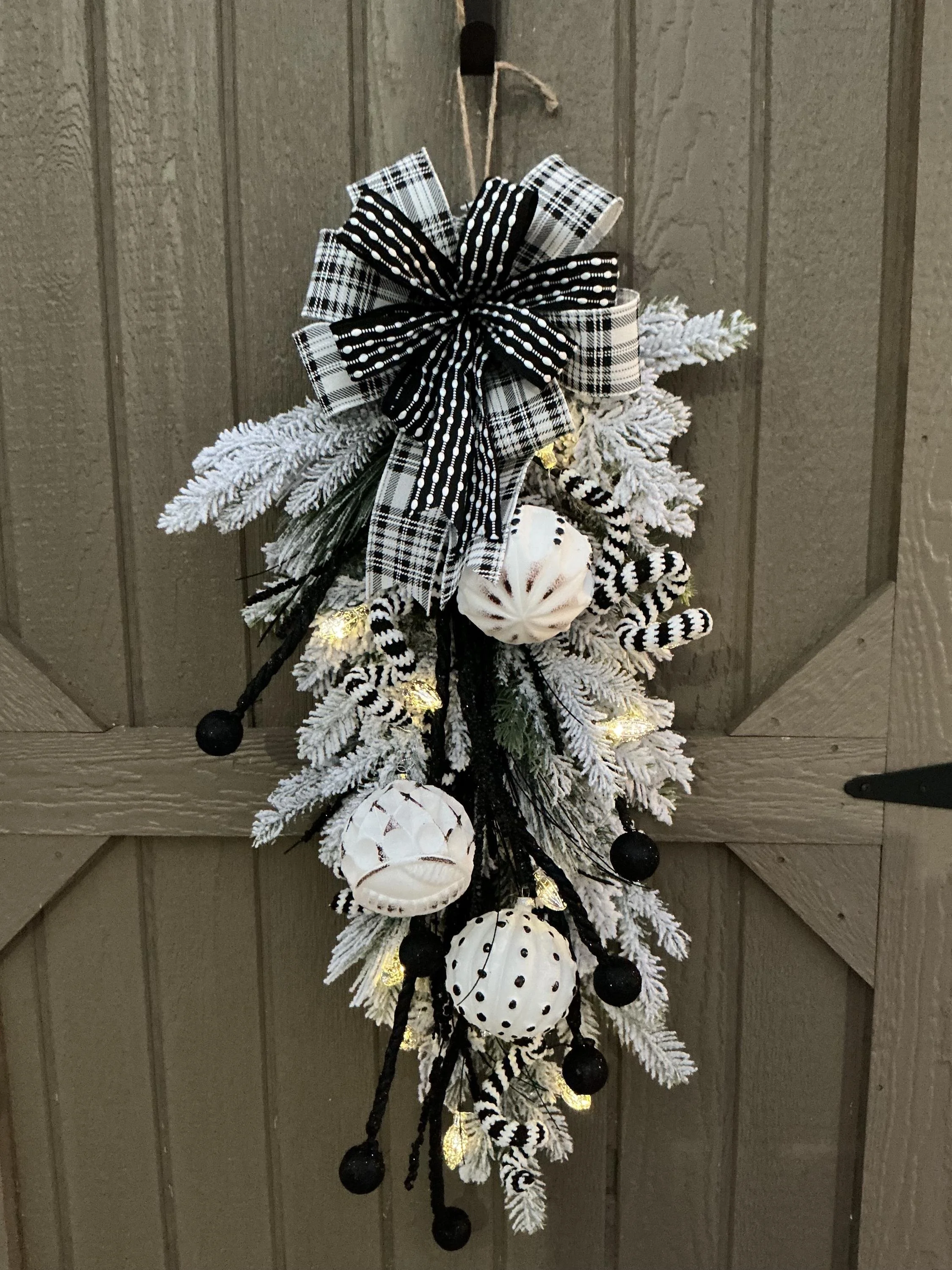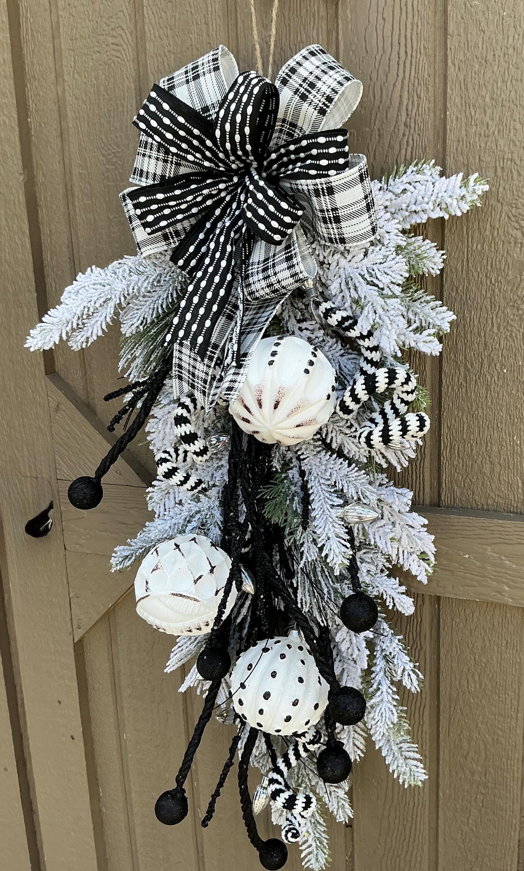 Store › Whimsical Black and White Ornament Holiday Swag Whimsical Black and White Ornament Holiday Swag $55.00 sold out Holiday Wreath/Whimsical Black and White Door Hanger/Lighted Home Decor/Ornaments Winter Decor Holiday Wreath/Whimsical Black and White Door Hanger/Lighted Home Decor/Ornaments Winter Decor Sold Out Added!